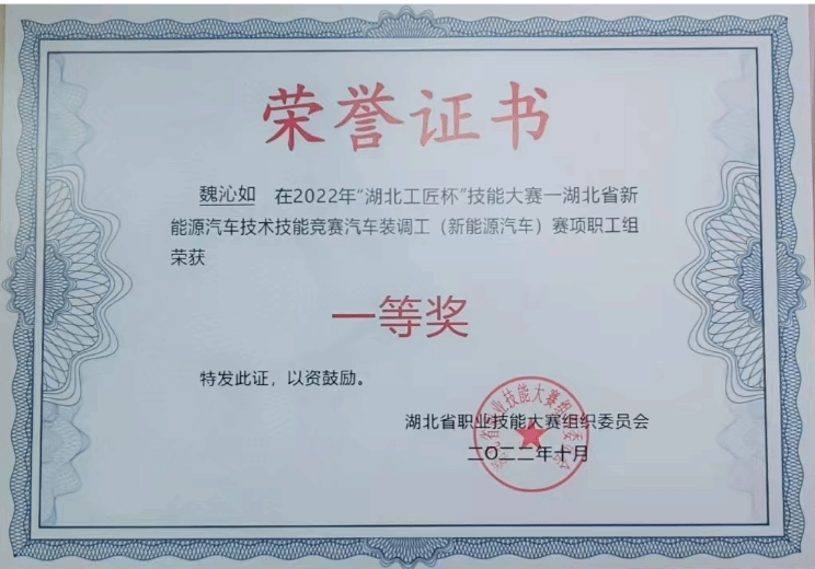 2022年湖北工匠杯新能源汽车赛项一等奖;