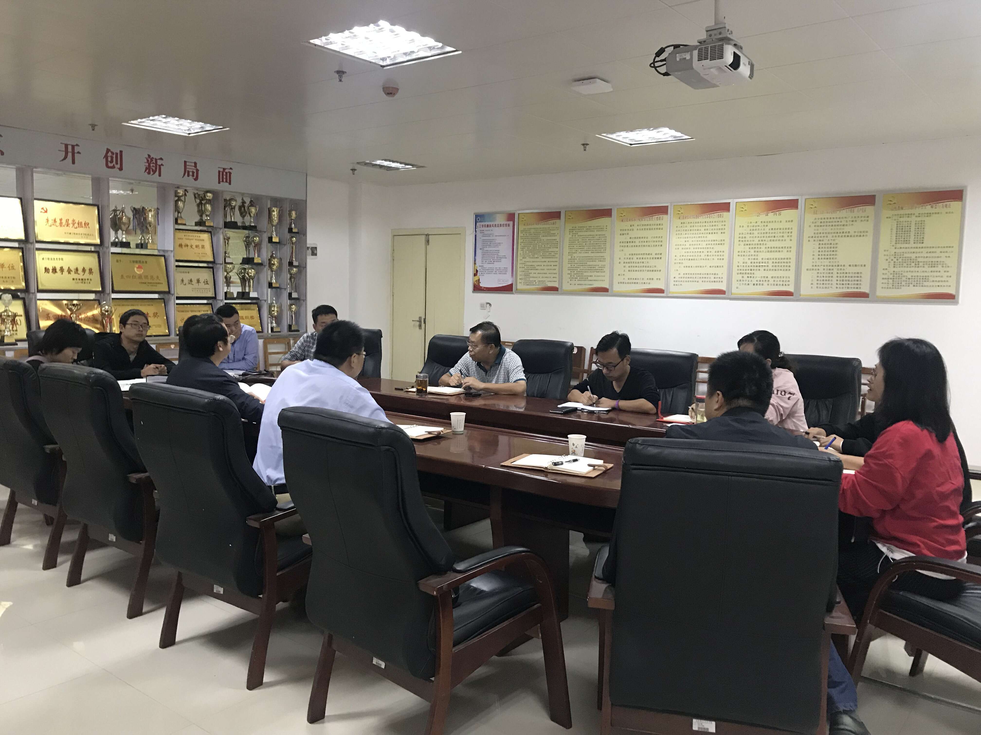 10月8日下午,公司总会计师胡绍山,计财处处长郑金洲来公司就如何提高行政效能和行政执行力进行调研指导,太阳成集团tyc122cc领导班子成员和部分教师、辅导员代表参加调研座谈会。