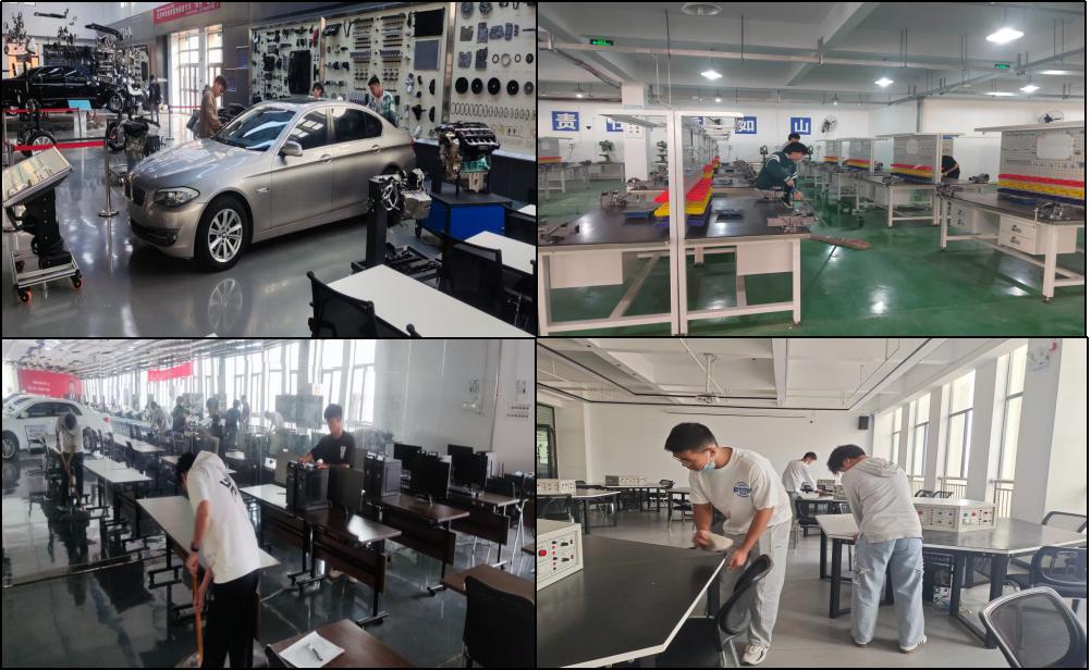 课程思政与劳动教育协同发展、双向融合。专业老师利用每一节课程思政教育,融入老员工安全教育,强化工科实训安全规范和操作规范,坚持每日一小扫,劳技共育深入课堂教学,引导员工养成勤俭节约,保持教室、实训室卫生,爱护教学设施的良好习惯。每一次课程结束前5分钟,在老师的教育引导下,师生共同清理教室、实训室卫生,整理归位实训工具及桌椅,保持教学环境整洁有序。