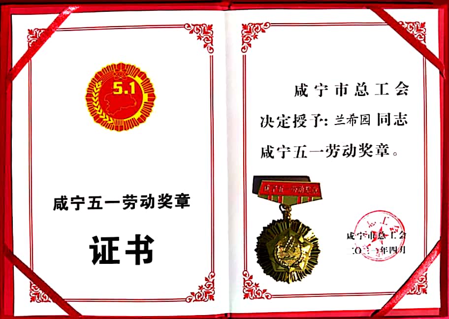 喜讯!兰希园荣获2021年“咸宁五一劳动奖章”