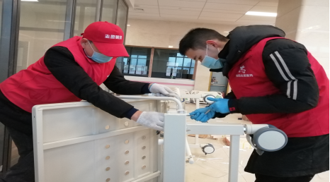 图3: 戴祁峰同学在黄州第二个小汤山妇幼医院安装病床