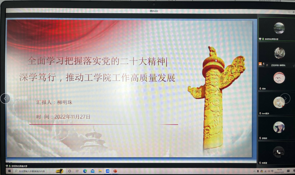 11月27日全天,工公司党总支通过线上会议的形式举办了学习贯彻党的二十大精神专题读书班,会议分三个阶段进行,全体党员及太阳成集团tyc122cc经理吴涛参加会议。