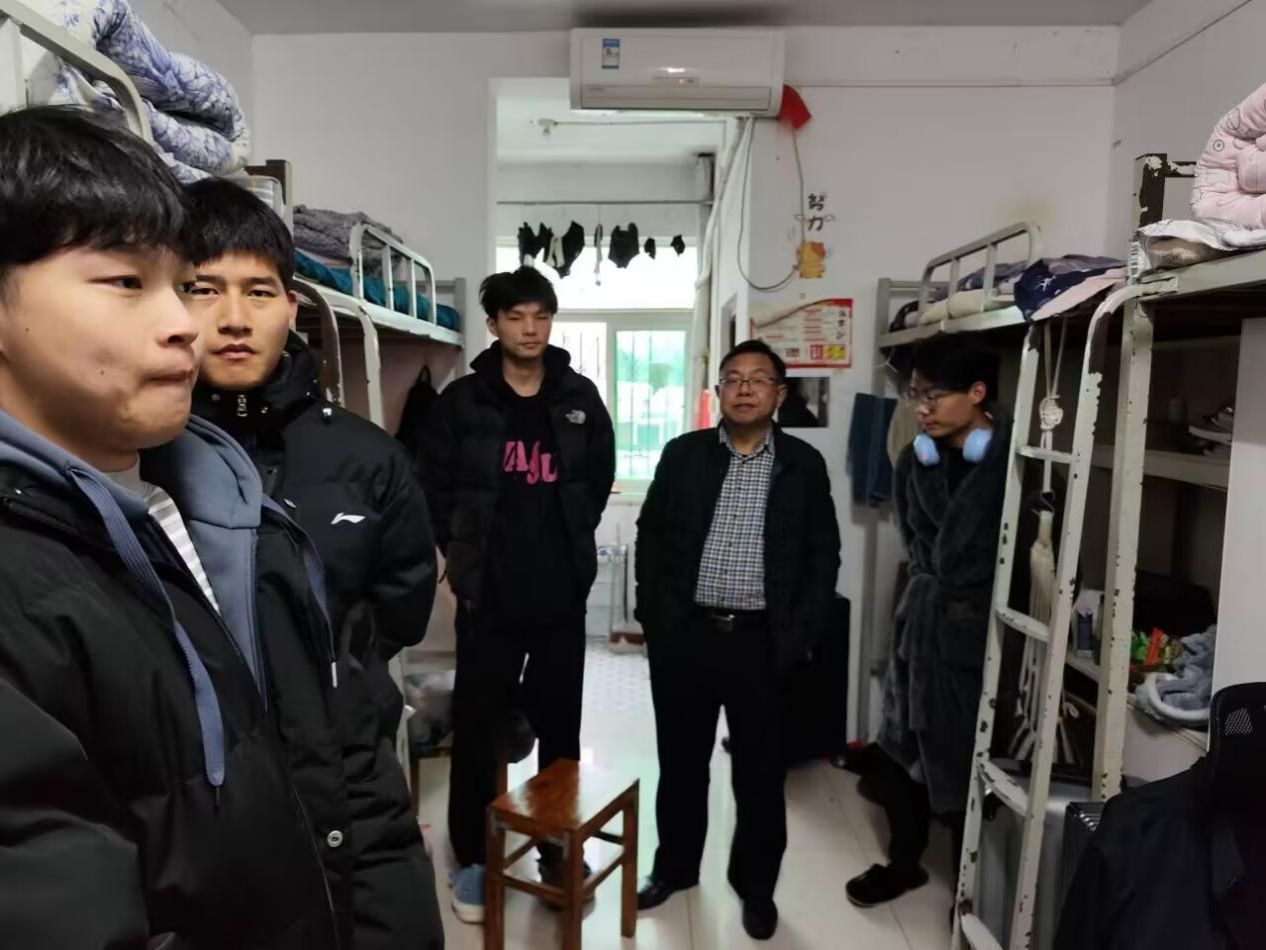 胡绍山详细询问了同学们新学期的生活安排、学习计划等,了解宿舍卫生、通风情况,检查水电设施是否良好,嘱咐大家要及时调整好生活作息,合理安排时间,同时提醒同学们气候多变,注意添衣保暖。