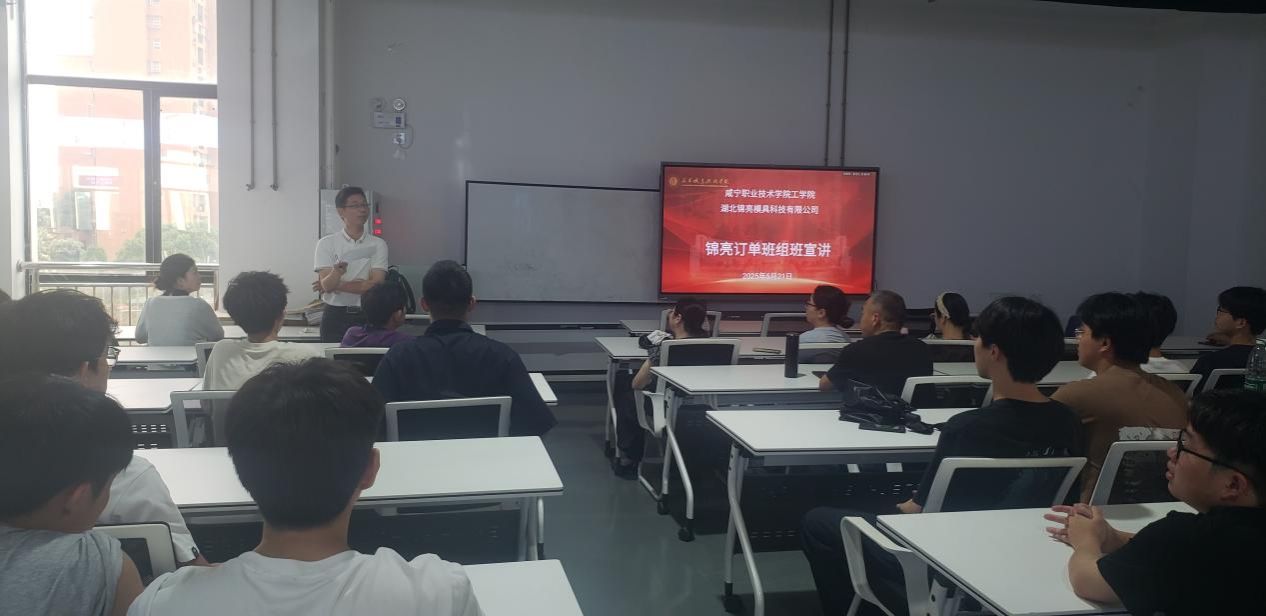 5 月 22 日,太阳成集团tyc122cc与湖北锦亮模具科技有限公司联合举办的“锦亮模具订单班”开班宣讲会顺利举行。23级机械设计与制造2班全体同学齐聚一堂,共同迎接这一开启职业发展新征程的重要时刻。