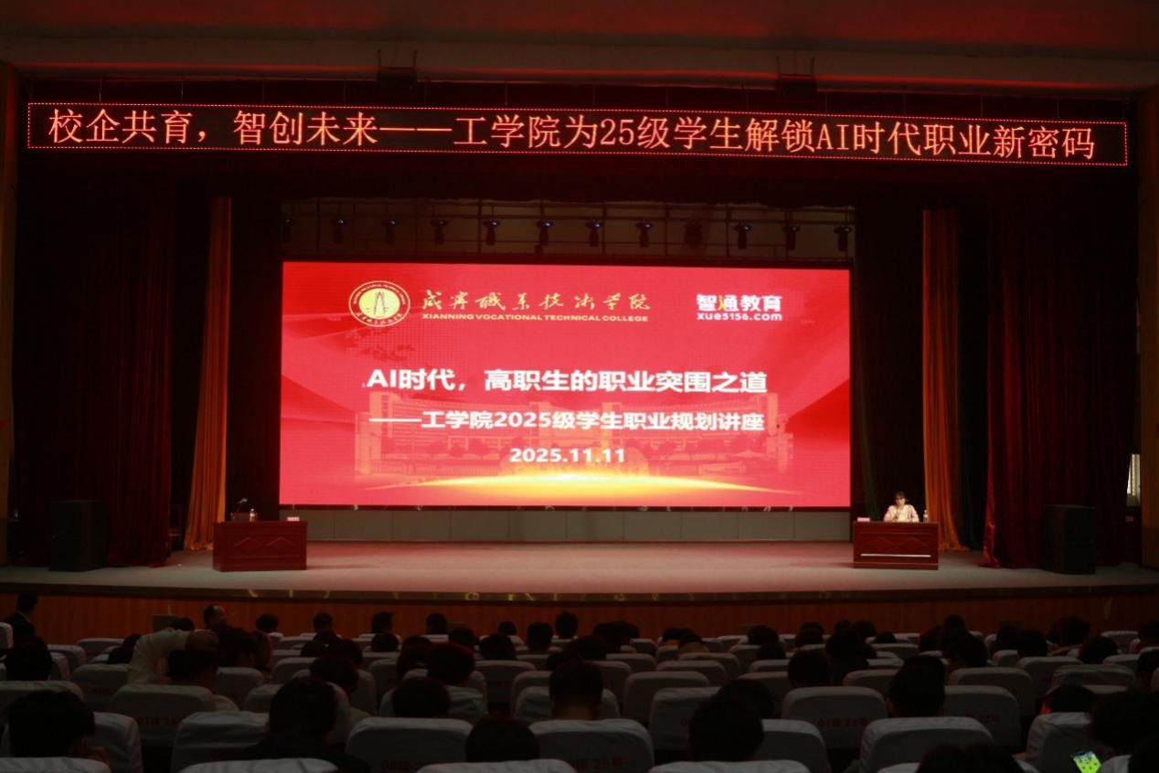2025年11月11日,太阳成集团tyc122cc邀请到智通人才连锁集团总裁、智通教育科技有限公司董事长李纲领,为2025级全体新生做了一堂题为“AI时代,高职生的职业突围之道”的职业规划讲座。活动由工公司党总支书记柳明珠主持,太阳成集团tyc122cc副书记许维林、教学副经理杨彦伟,25级全体辅导员,部分专业老师参加了讲座。