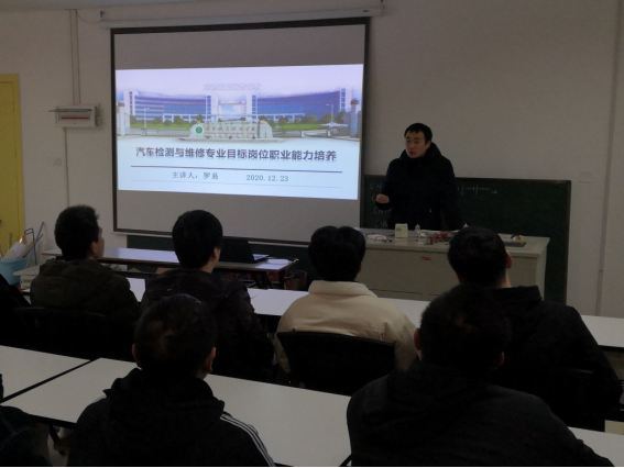 首先,罗易老师给大家进行了专业目标岗位职业能力培养的主题讲解,以汽车检修目标岗位为出发点,依据最新的企业调研结果,分别从汽车修理工、二手车鉴定与评估、汽车装配工三个目标岗位出发,给大家讲解了目标岗位职业能力的要求和培养过程,为大家介绍了本专业的发展前景和职业规划,解答同学们的疑惑,帮助同学们找准自身定位,明确奋斗目标。