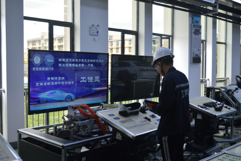 图1 智能新能源汽车1+X职业技能等级证书考核现场