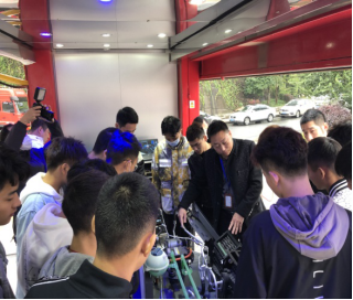 在新生专业教育现场,专业教师结合实物,对新能源汽车产业发展、我国新能源汽车现状,核心技术、关键部件、技术瓶颈等方面同学们进行了现场交流。大家对新能源汽车十分好奇,特别是对新能源汽车电池寿命、续航里程等问题十分关心。