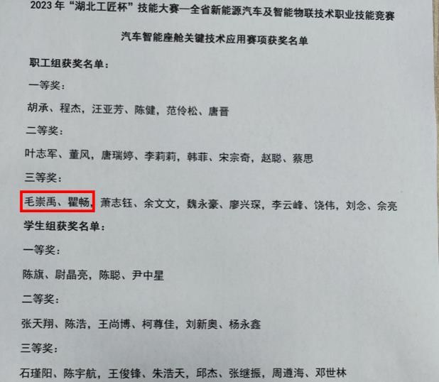 喜报 公司参加2023年“湖北工匠杯” 新能源汽车与智能网联技术技能竞赛获得佳绩