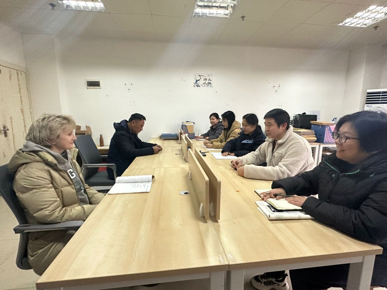 首先俄方教师安娜与机电一体化技术专业教研室的教师互相进行了自我介绍,安娜老师期间介绍了自己所学专业及所受课程,机电一体化技术专业教研室主任刘小阳老师则介绍了中外班员工的基础,并希望安娜老师在教学中对员工更加有耐心。会上,赫焕丽老师在课程标准及课程内容上与安娜老师进行沟通,陈楠老师则在教学模式与方法上与安娜老师详细交流。会后,俄语老师兼本次会议的翻译张嘉玲老师转告了安娜老师的谢意,表示本次交流很开心,并收到启发。