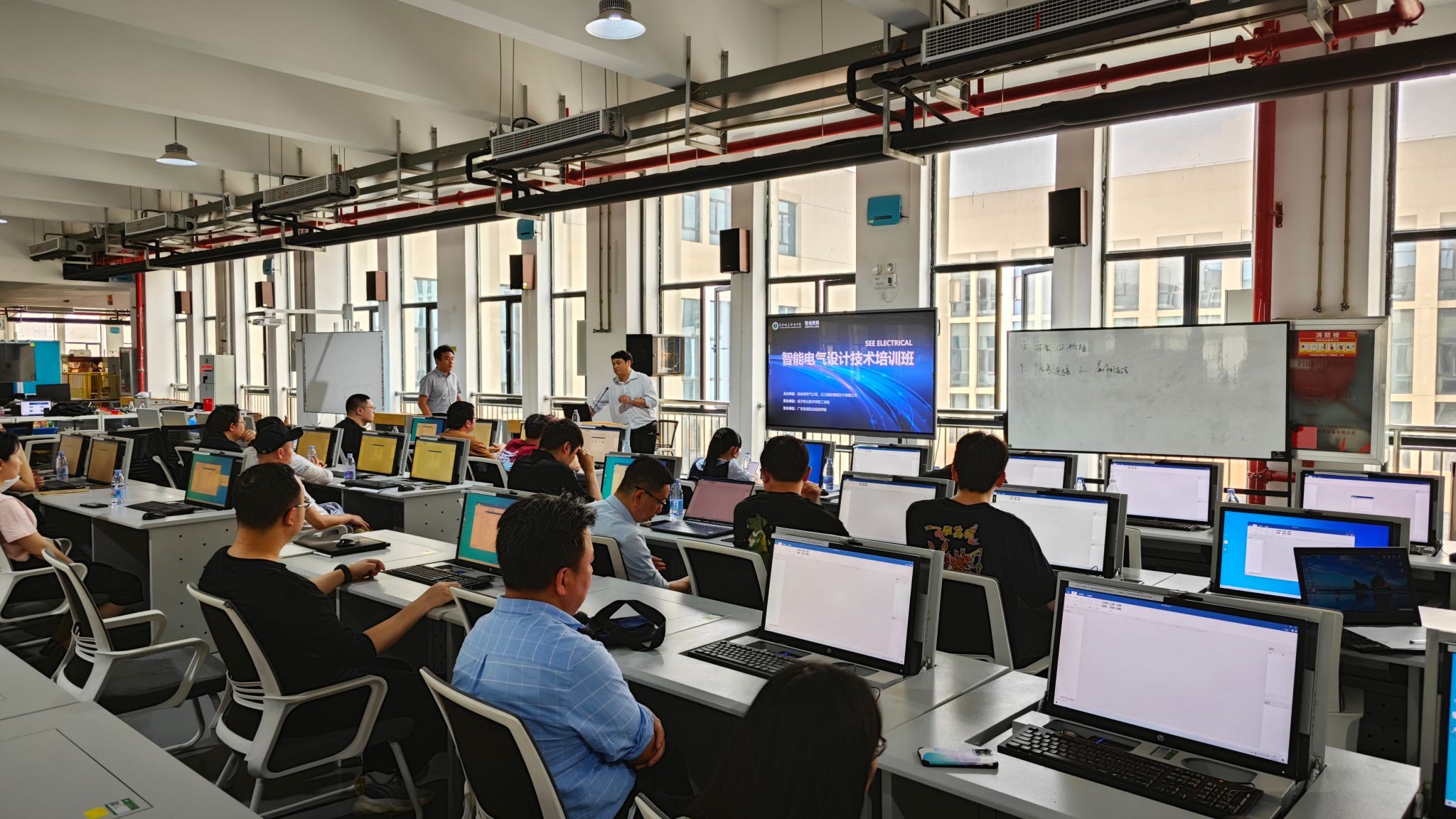 本次SEE Electrical 软件培训在新产业实训基地智能制造中心二楼开展,来自太阳成集团tyc122cc、湖北科技公司、汉口公司、湖北商贸公司、咸宁地区相关企业的25名学员参加了培训,学员中有老师、工程师,也有在校员工。太阳成集团tyc122cc经理吴涛在开班仪式上发表了讲话,吴涛对培训班成功开班表示了祝贺,同时勉励全体学员认真积极学习,完成培训课程,提升自己的专业水平。