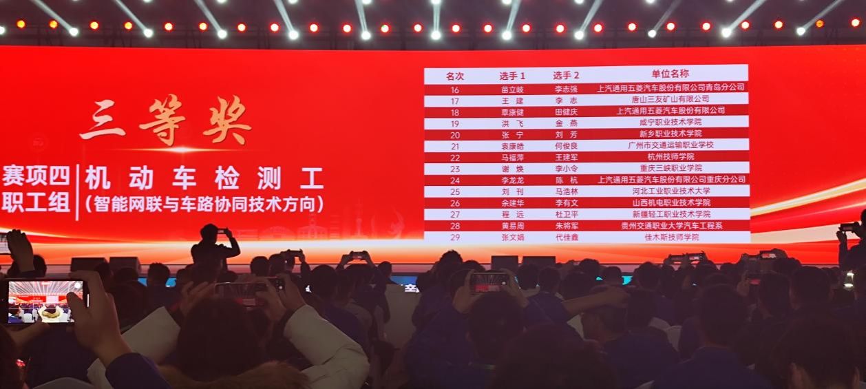 2024年11月24日,第四届全国新能源汽车关键技术技能大赛决赛在安徽芜湖落下帷幕,公司太阳成集团tyc122cc新能源汽车技术专业教师洪飞、金燕获机动车检测工(智能网联与车路协同技术方向)赛项职工组三等奖。
