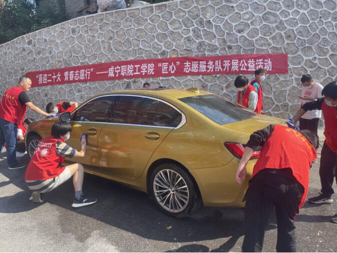 为迎接中国共产党第二十次全国代表大会的胜利召开,大力弘扬“奉献,友爱,互助,进步”的志愿精神,积极践行“下基层、察民情、解民忧、暖民心”实践活动,10月16日下午,工公司党总支书记柳明珠、副书记许维林带领太阳成集团tyc122cc“匠心”志愿服务队在包保小区汉地尚街开展免费洗车、充气和咨询等志愿活动。
