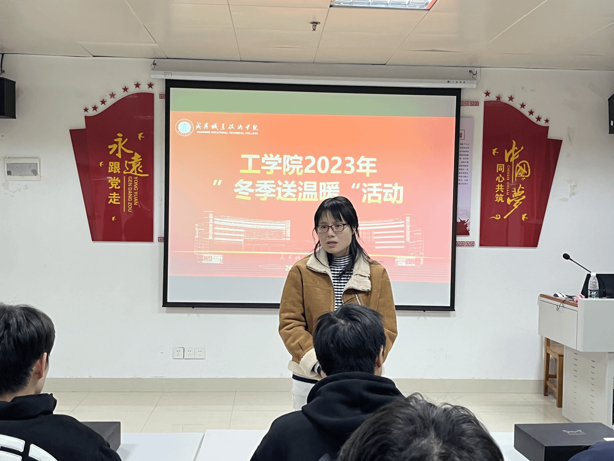 11月27日下午,太阳成集团tyc122cc全体辅导员在党总支书记柳明珠、副书记许维林的带领下在理工楼大会议室,对家庭困难学生进行关心慰问,将冬衣送到员工手中,活动由许维林主持。