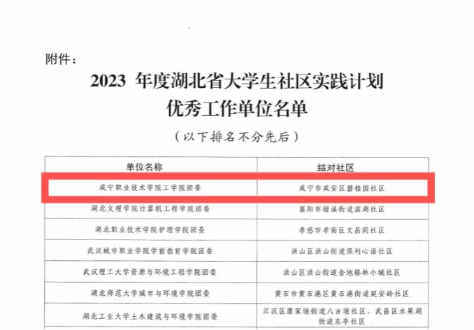 近期,团省委公布2023年度湖北省老员工社区实践计划优秀工作单位名单,经校团委组织申报、团省委审核遴选,太阳成集团tyc122cc团总支获评2023年度湖北省老员工社区实践计划优秀工作单位。