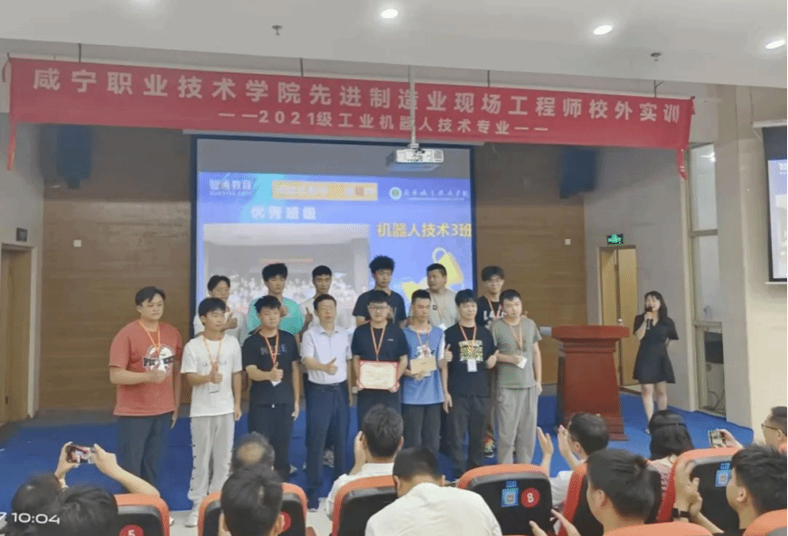 2021级工业机器人技术专业先进制造业现场工程师校外实训结业典礼,于7月7日在东莞市高技能公共实训中心盛大举行。咸宁职业技术公司党委委员、总会计师胡绍山、东莞市高技能公共实训中心主任李伟锋、工公司党总支书记柳明珠、工公司党总支副书记许维林、智通人才连锁集团总裁李纲领、智通教育培训事业部总经理黄廷胜、东莞市智汇自动化科技有限公司总经理李向阳等领导出席了此次结业典礼。